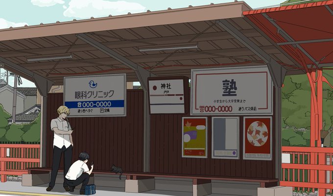 #イラスト #Illustration #創作男子 #創作 #金髪 #黒髪 #オリジナルキャラクター #オリジナルイラスト #駅 #スマホ #猫 #風景 #高校生 #ねこ #cat #drawing #空 #sky #京都