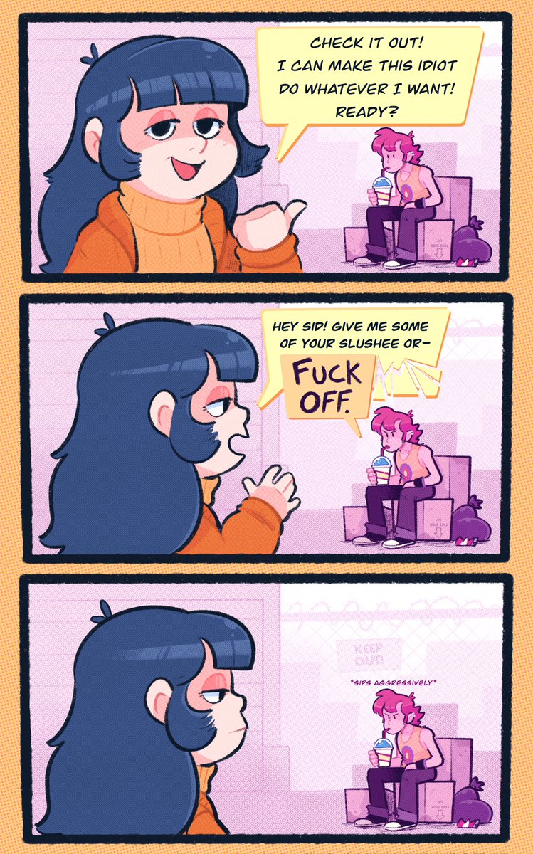 70 529 Violet and Sid have the Double Dragon dynamic where they work super well together and would totally die for one another but it all gets thrown out the window whenever they both see a cute girl and wanna look cool in front of her 🐉💥🎯 23/08/18 10:00