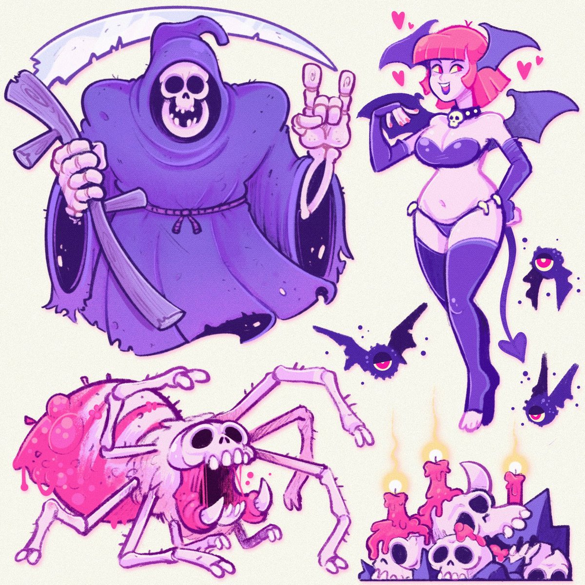 Drawing that other reaper reminded me of this one which I still like better 🦇💀💜👹🕷