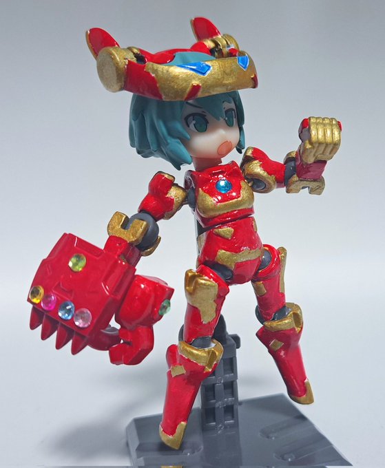 【コンテスト参加】 【応募条件に同意します】 【戦闘】 #デスクトップアーミー #コトブキヤ #アニマギア 染来ver.3 閃雷とのシンクロ率を上げた姿 シンクロ率を上げる事で互いに足りない物を補う事ができる 能力も上がる代わりに活動時間が短いのでシンクロ率を調節しながら戦う