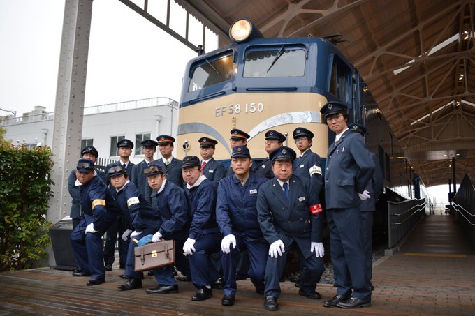 というわけで集合写真の数々と、シチュエーション撮影を一枚。 制服と帽子と眼鏡をとっかえればなんとなくそれなりにそれっぽくなってしまう私、どうやらモブ顔なのだなと最近気が付きました。 撮影:サロネさん(@shinjuko_st) (③駅員:@NozoMaru6934) #アコスタ京都鉄道博物館 #国鉄制服