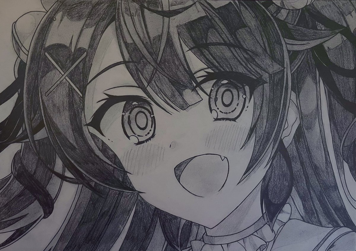 #絵リファ レヴィ・エリファさん初描きです。 昨日の3D生ライブの興奮が 冷めなかったので、その気持ちを シャーペンに注ぎ込みました。 絵の質も悪くなかったから良いネ。