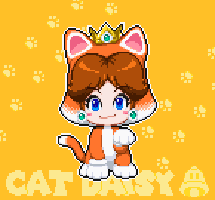 一時期ネコデイジーが話題に上がってた時に描いてたものを仕上げてみた。(三毛じゃないけど) …3Dワールドのアプデで使えるようにならないかなぁ #ドット絵 #pixelart #デイジー姫