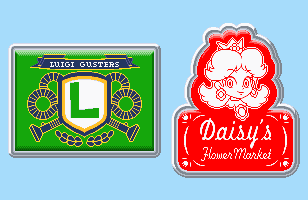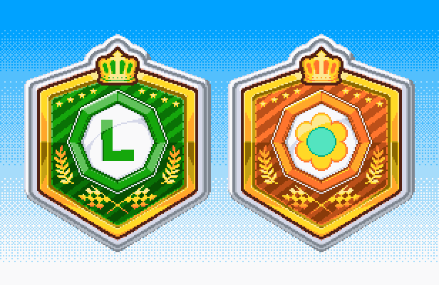 クッパVSドンキーツアーから負けたチーム側にもバッジが貰えるようになり、名実ともに幻となったルイージとデイジー姫のチームバッジです!! …はぁ(溜息) #ドット絵 #pixelart