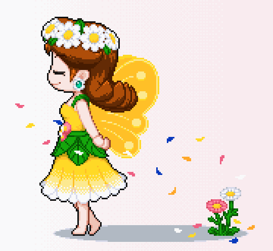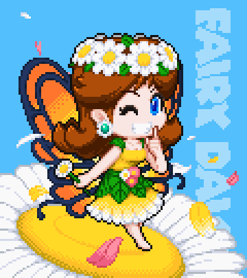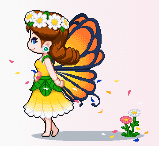 いつもよりちょっと頭身高めなフェアリーデイジー姫 2枚目:ユーヤケチョーチョVer #ドット絵 #pixelart #デイジー姫