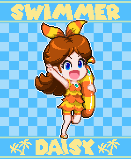 もう海の季節なんかとっくに過ぎてるけどペイントルイージと水着デイジー姫描いたので上げときます。 1枚目から順に見てもらえるとありがたいです #ドット絵 #pixelart #ルイージ #デイジー姫