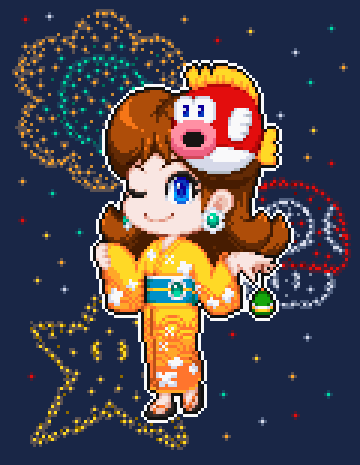 浴衣デイジー姫描きました。夏祭りツアー中に間に合って良かった #ドット絵 #pixelart #デイジー姫