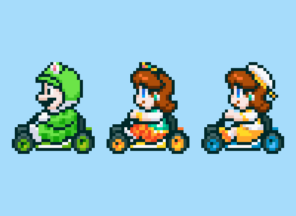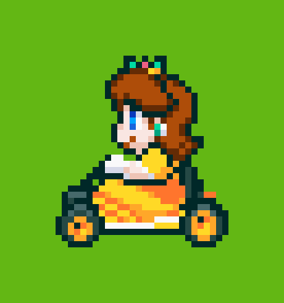 ざっと描いてみた初代マリカー風デイジー姫 顔は最初本家ピーチ姫をモデルにしようとしたけどちょっと微妙だったのでだいぶアレンジしてあります もしかしたらまだ増えるかも… #ドット絵 #pixelart #デイジー姫