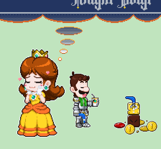 わたしの騎士(ナイト)様 #ドット絵 #pixelart #ルイージ #デイジー姫