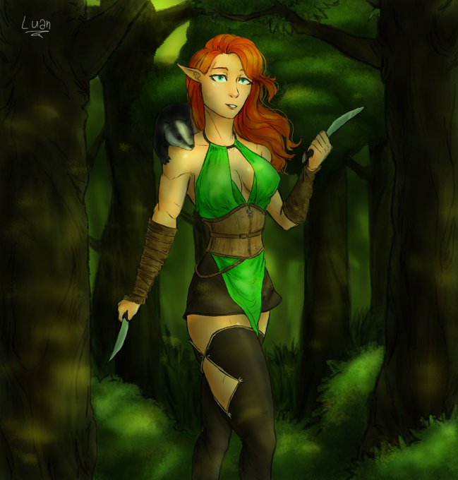 Cassandra Bloodvirn - Uma caçadora habilidosa que alcançou o posto de liderança de sua ordem após derrotar um antigo espírito nada amigável... #RPG #DnDcharacter #dndart #characterart #characterdesign #conceptart