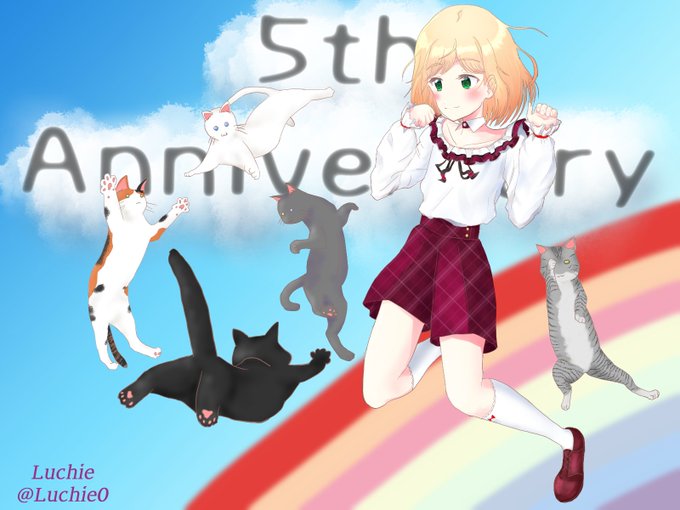 ㊗活動5周年㊗ おめでとうございます✨ アキくんが一歩を踏み出して、それほど間を置かずにその背を追いかけることができて幸せです。 これからもキミの行く先に遅れずついていきますね🐈 #鈴谷アキ5周年記念祭 #アキくんちゃんアート