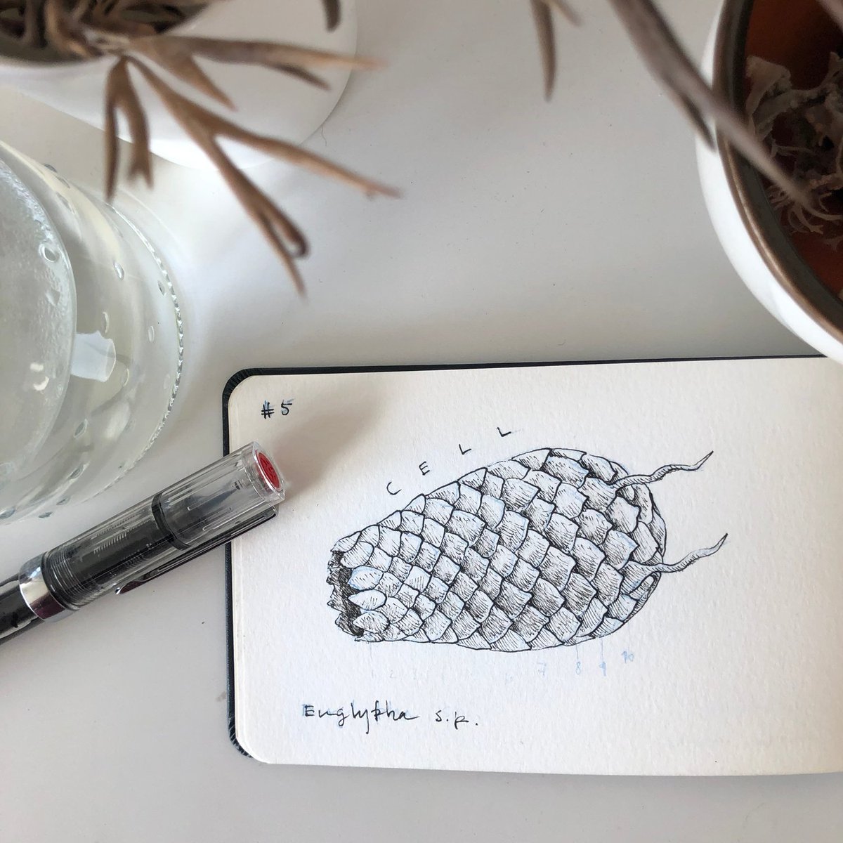 @GNSIorg & @illustraciencia Inktober list! Day 4 / Teeth / Loxodonia molar tooth Day 5 / Cell / Euglypha s.p. Day 6 / Bone / Ovis aries vertebra #scientificillustration #SciArtober #Illustraink22 #INKtober2022 #inktober #natureillustration