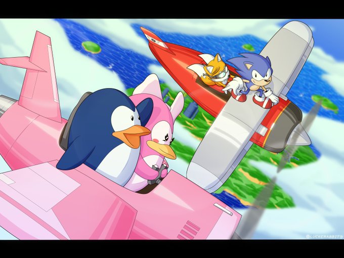 Flying over westside island!~ ~Commission for @LetsFindABird~ #commission #digitalart #ArtistOnTwitter #SonicTheHedgehog #Tails #Penta