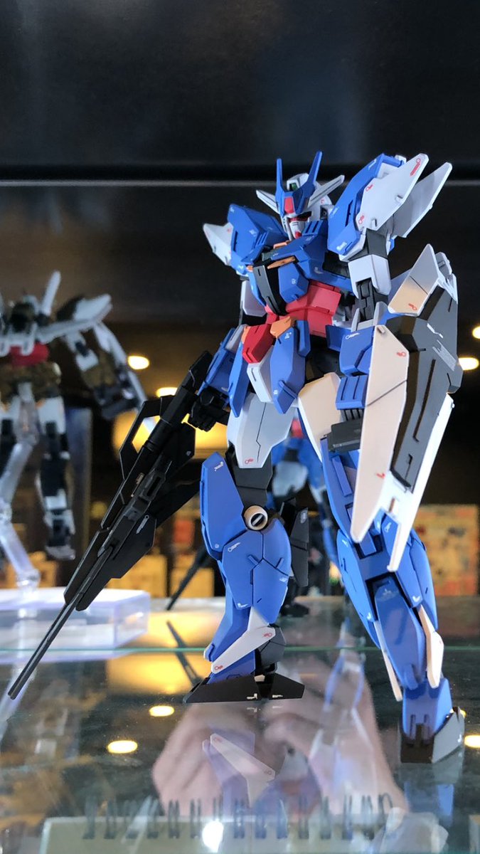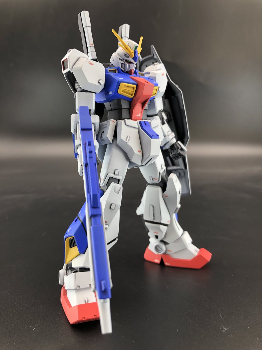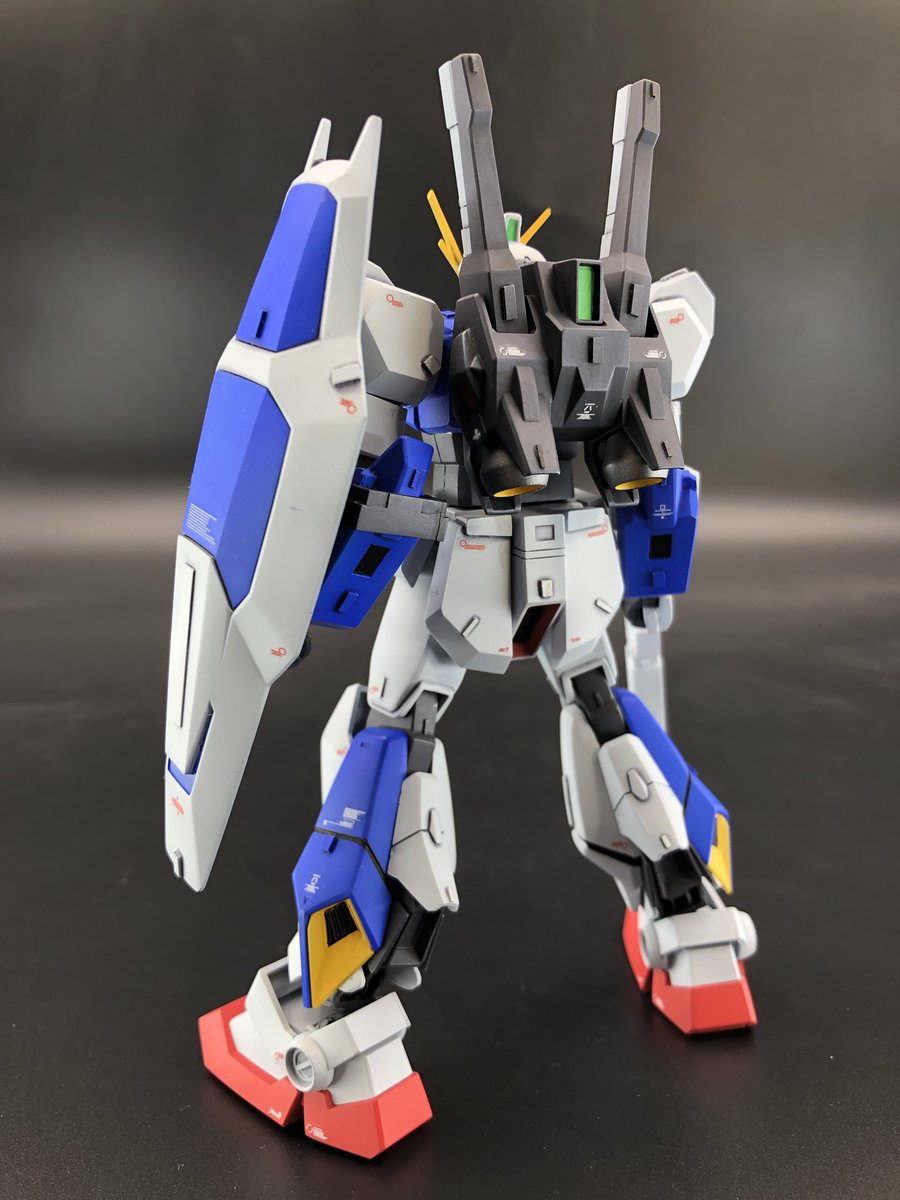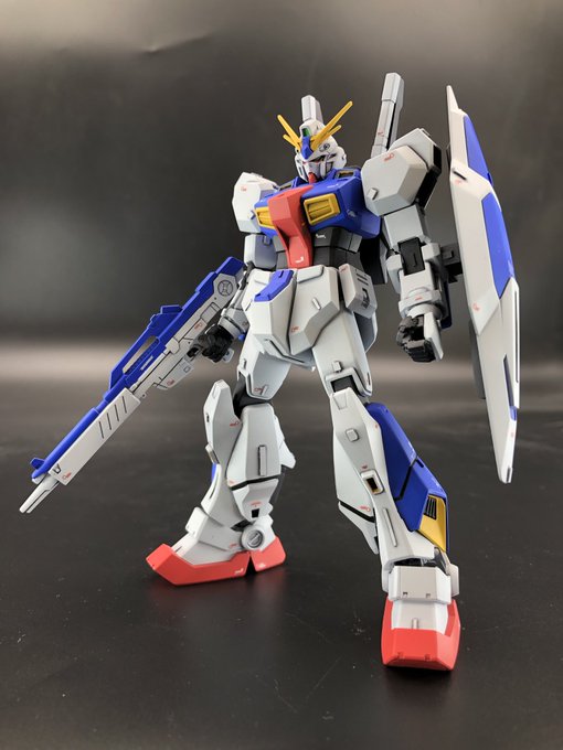 1/144 RX-78-AN01 ガンダムトリスタン 完成しましたー。 手首はオリジンガンダムを使用した以外は幅詰め、プラ材での幅増しやディテール追加等で作ってますー。 こちらはアニプラカフェ工房さんのRX-78コンペに参加のため、お店に展示中です! #ガンプラ #ガンプラの画像貼るとRTされると聞いて