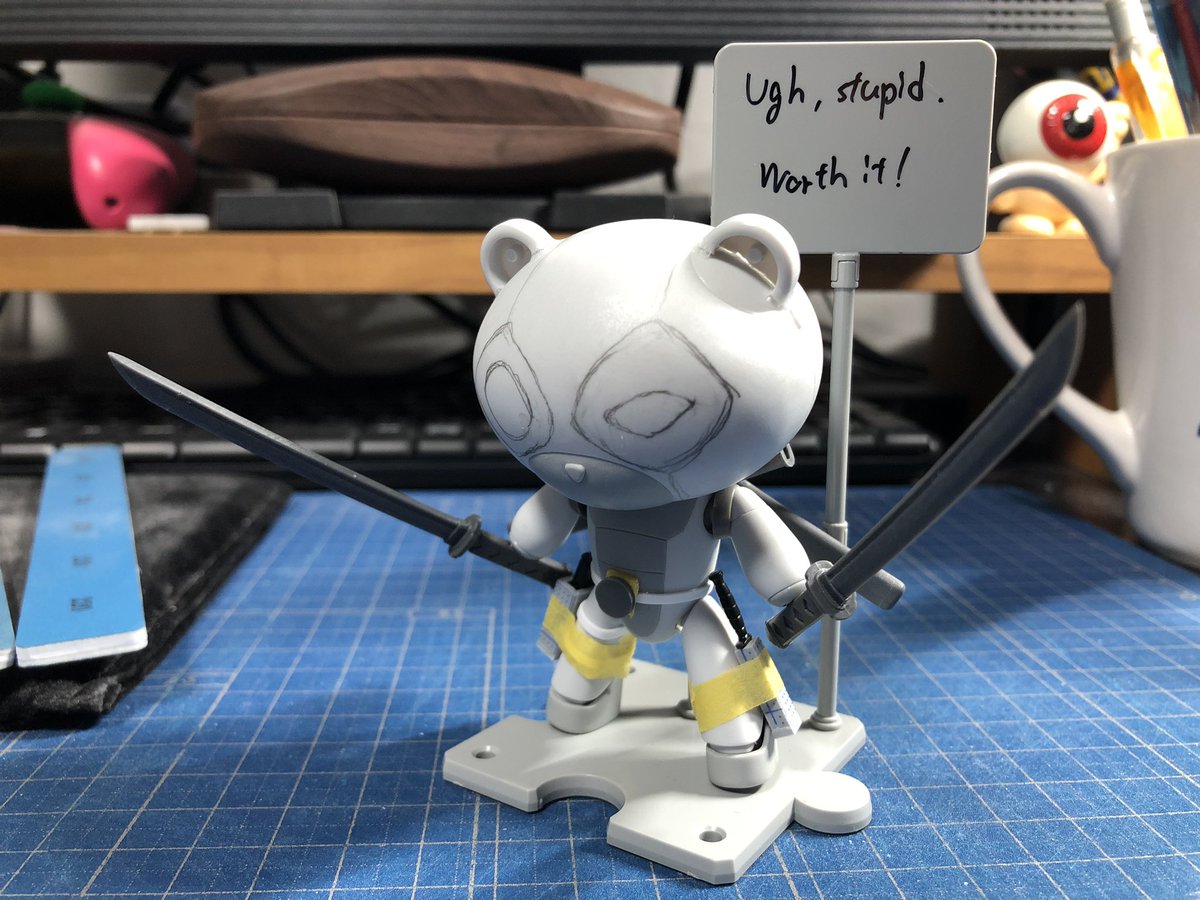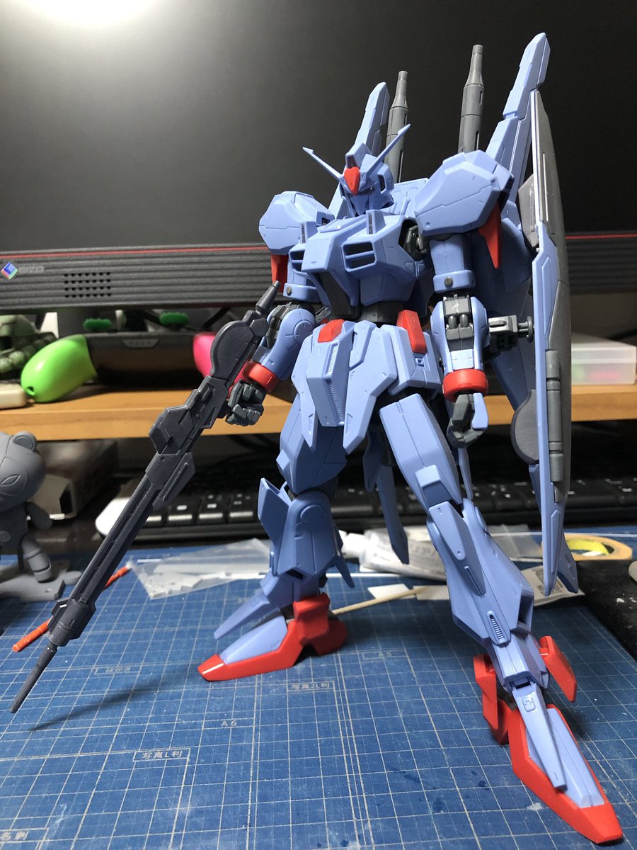 ガンダムMk.III進捗〜。 肩部にボールジョイント仕込んで足首に可動軸追加しました〜。 効果は薄いですが… 顔もうちょっとだけイジって、バインダーの接続軸の肉抜き埋めて一旦工作終了としま〜す。 #ガンプラ #gunpla #gunplaphotos