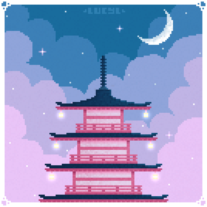 2 4 today's theme: 🌸 P A G O D A 🌸 #pixelart 23/05/07 11:25