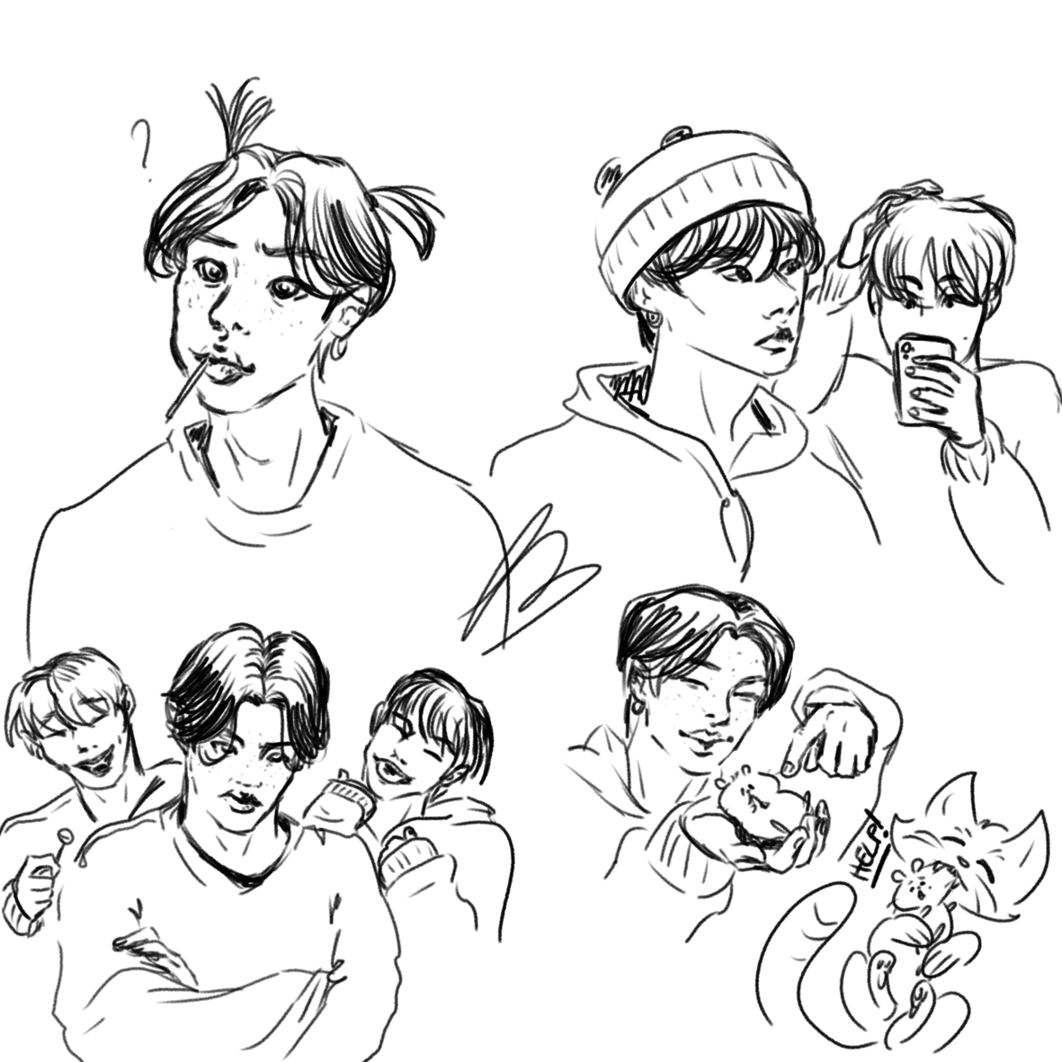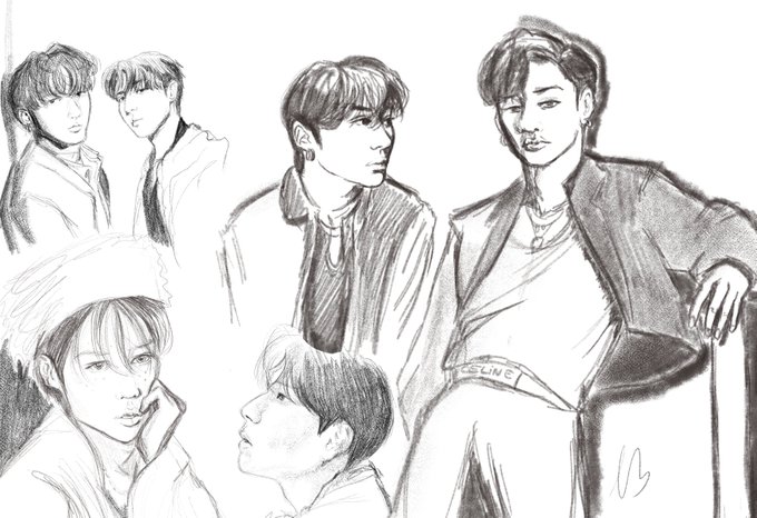 I didn't want to post these two sketches I drew months ago cause meh 🫤 but I don't have new things... #Straykidsfanart