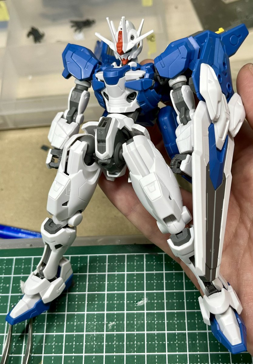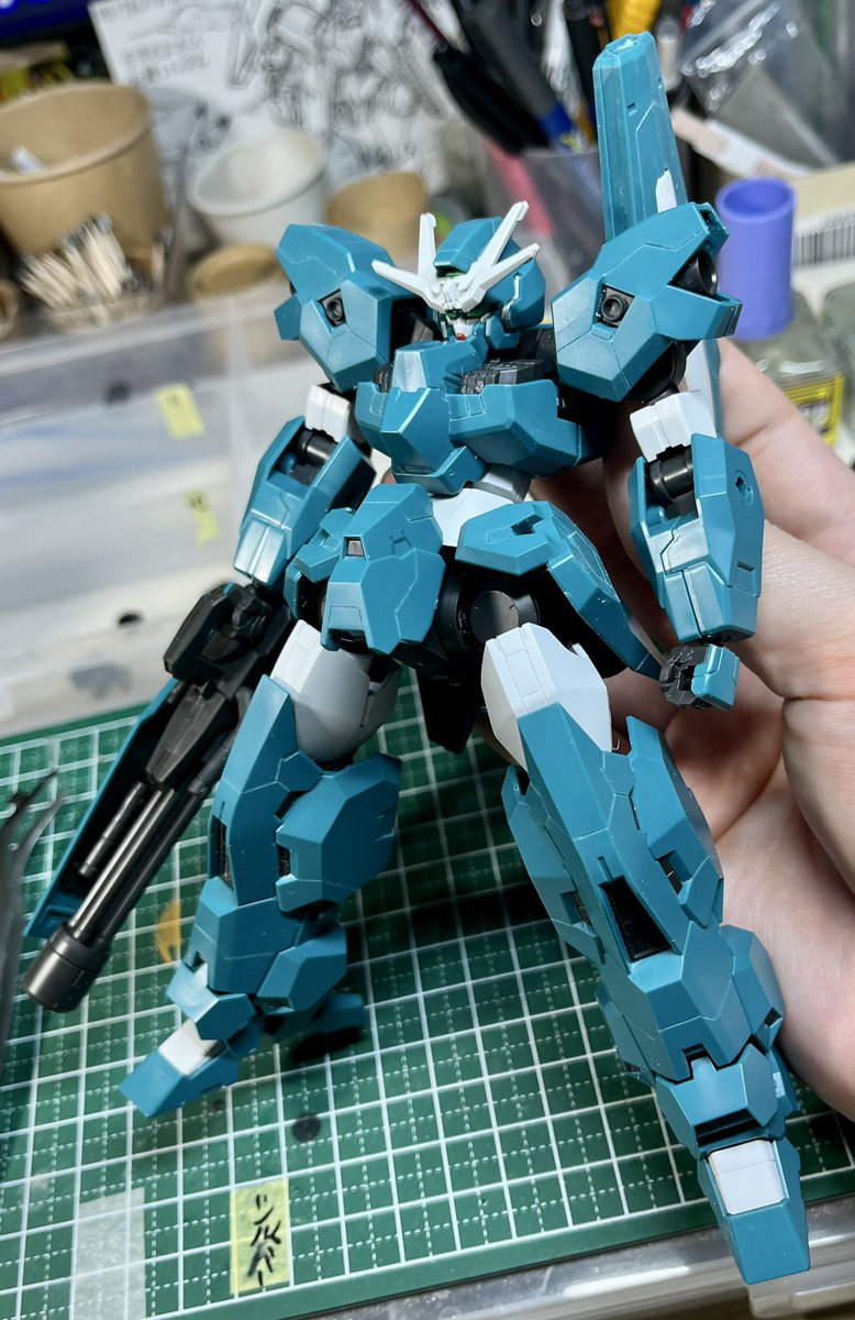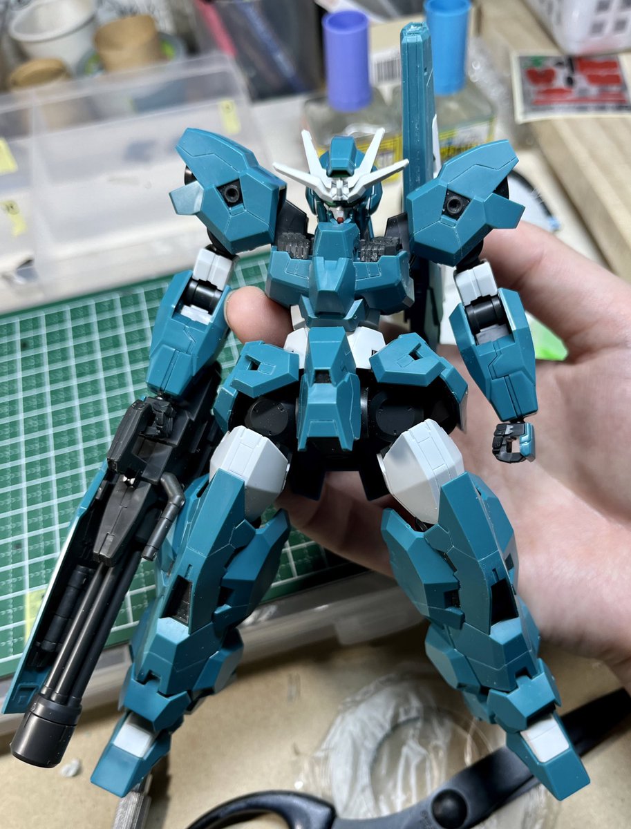 #ガンプラ 完成! HGガンヴォルヴァを作りました 頭身上げ等の体系変更、可動域拡張、下半身中心に少しモールド追加、アンテナのシャープ化(というより肉厚落とし)等を行っています