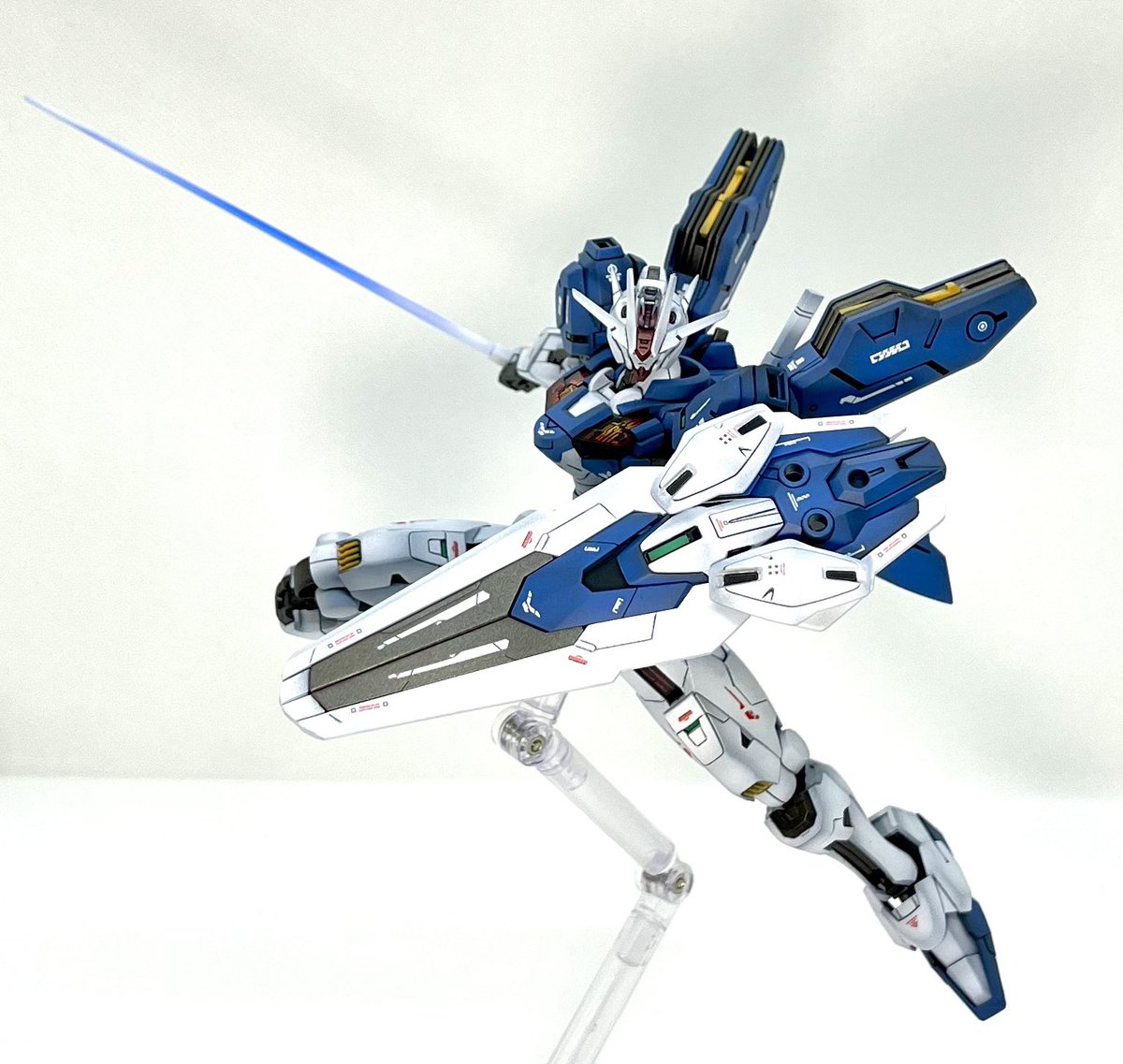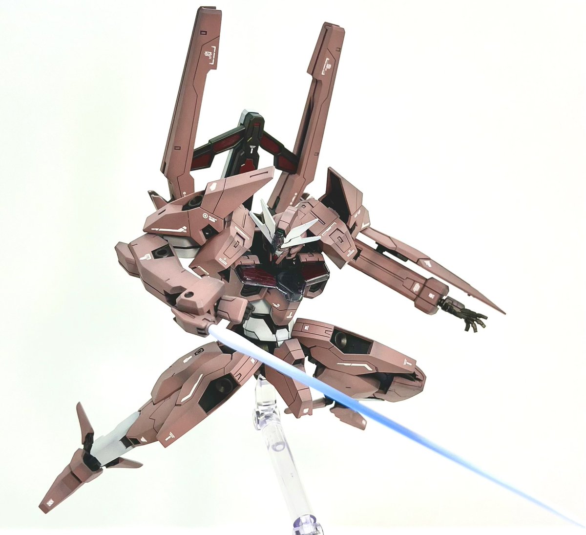 #ガンプラ 寝落ちして早起きしたので……完成! HGガンダム・ルブリス・ウルを作りました! 体型変更、シャープ化、多めにモールドの追加、可動域拡張、クリアパーツや発光パーツのグロス塗装等を行っています