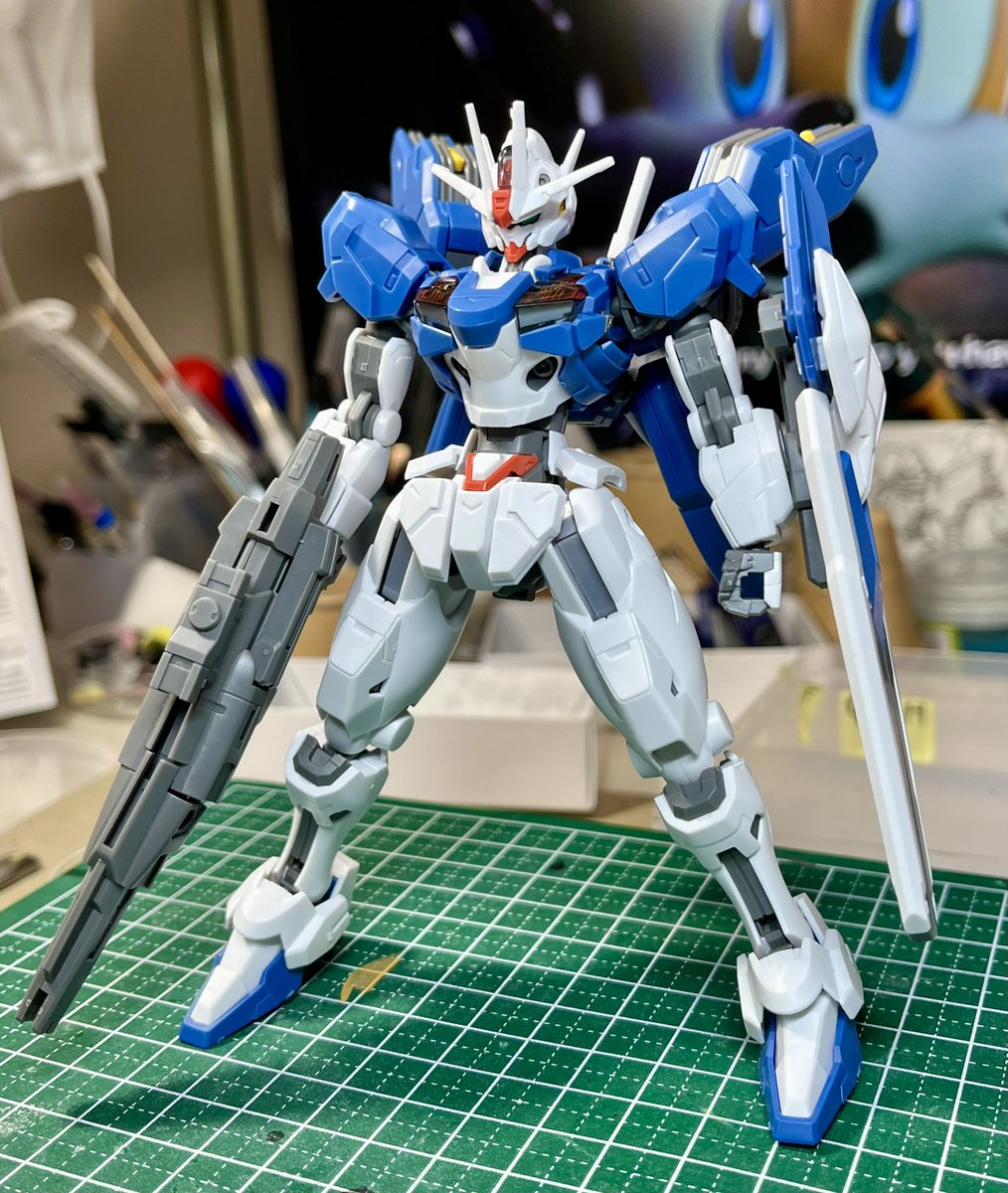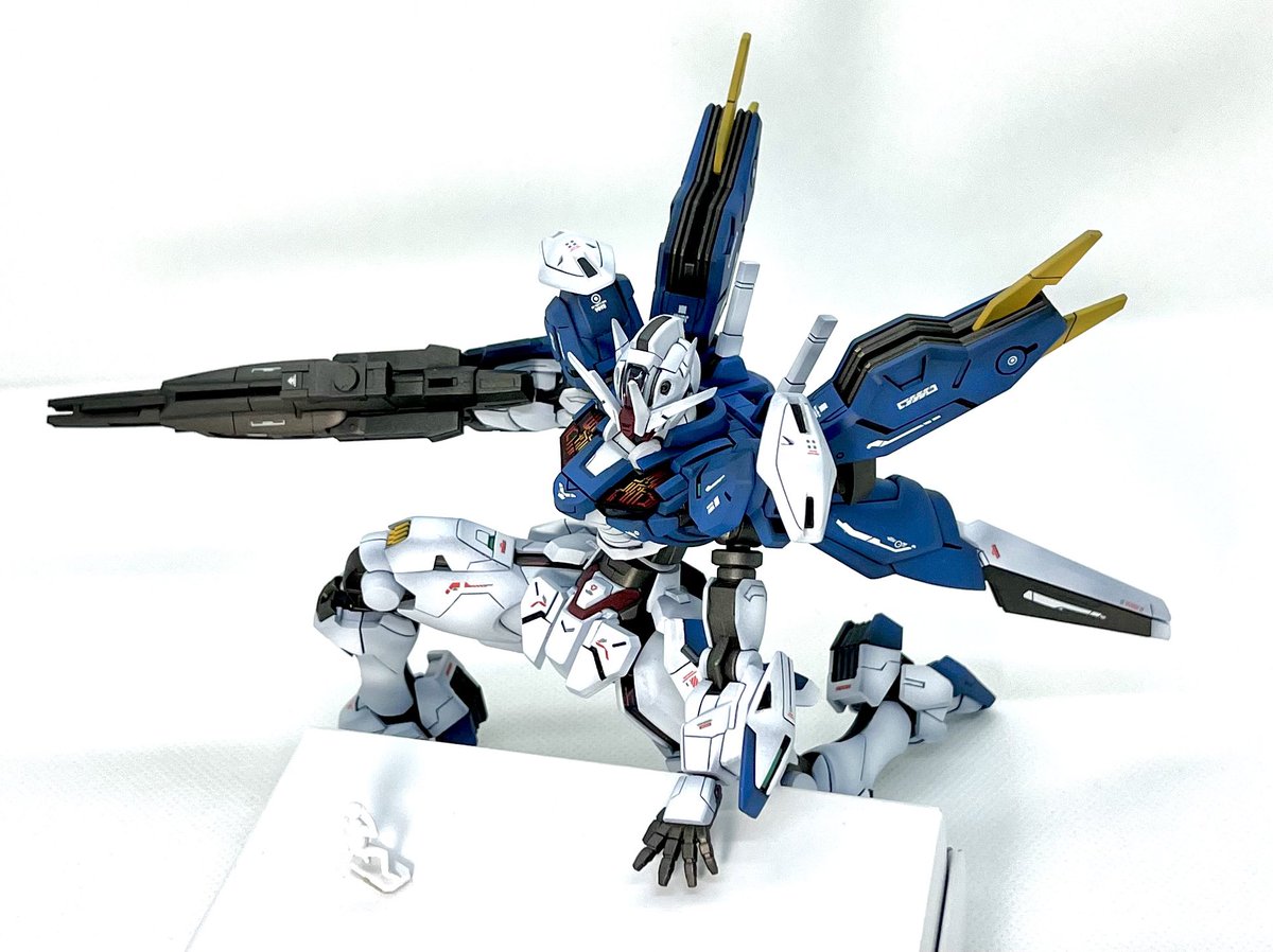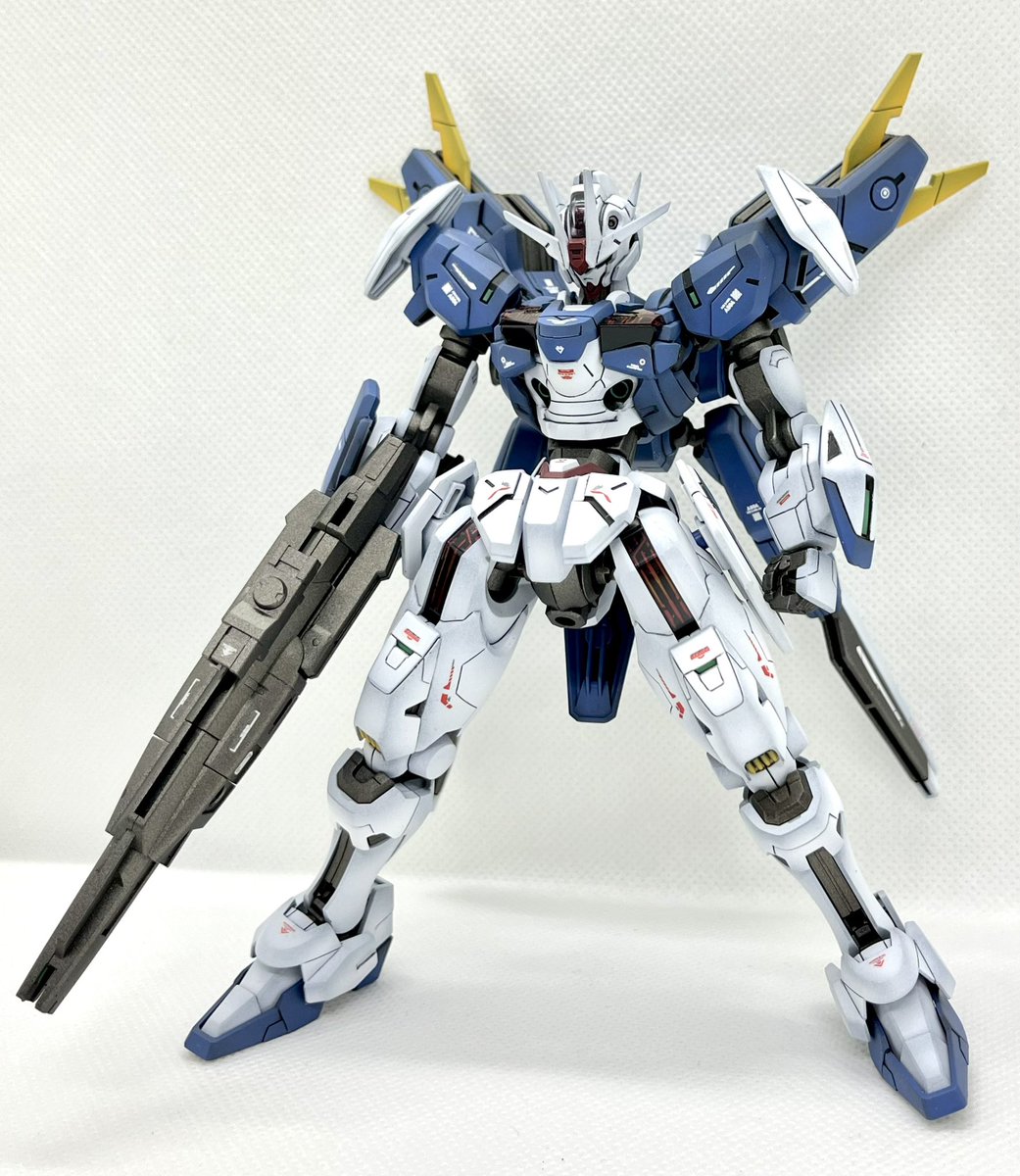 #ガンプラ 完成! フルメカニクス ガンダムエアリアルを作りました! 体型変更、サイドアンテナのシャープ化、エスカッシャンへのモールド追加等を行っています