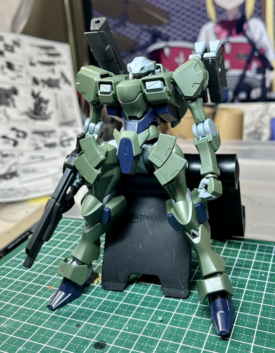 #ガンプラ 完成! HGザウォート・ヘヴィを作りました! 頭部と肩の位置をかなり上上げれるようにしたり等の体型変更、モールド追加、可動範囲拡張、ガイドテープー使ってのディテールアップ等を行いました