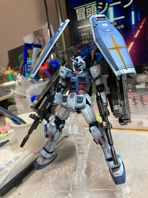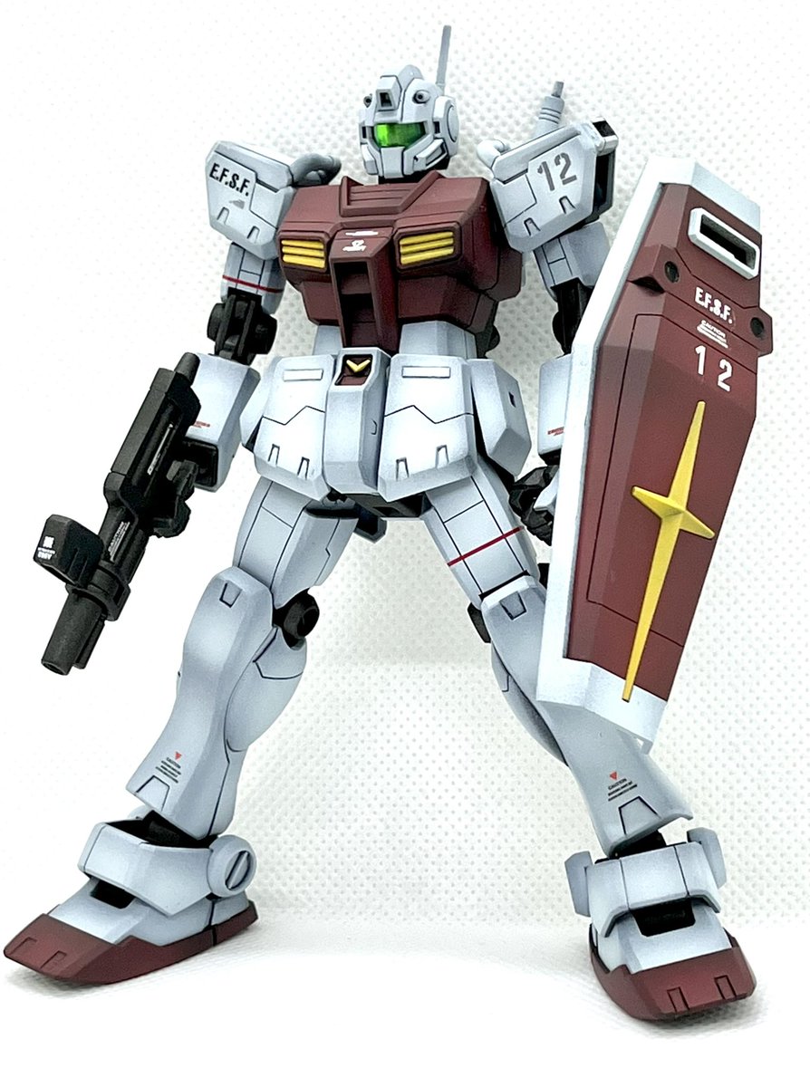 48 363 #ガンプラ 完成! HGUCジムC型をベースにIGLOO黙示録版のジム後期生産型を作りました EGガンダムから十時シールドを移植して、IGLOO版ビームスプレーガンをそれっぽく自作しました あとS字立ちできるよう強めに体型変更、モールド追加、合わせ目消し等を行いました 23/04/25 05:00