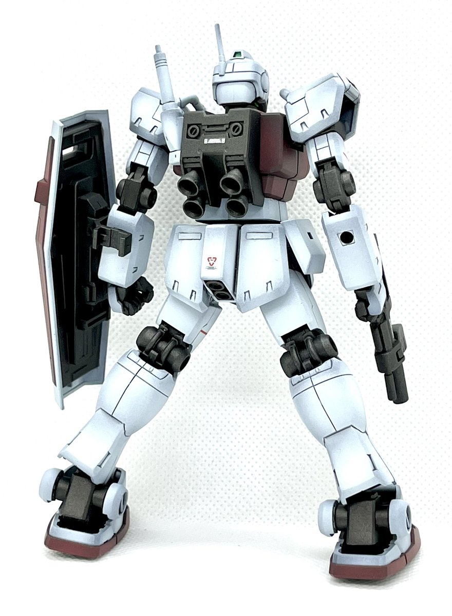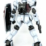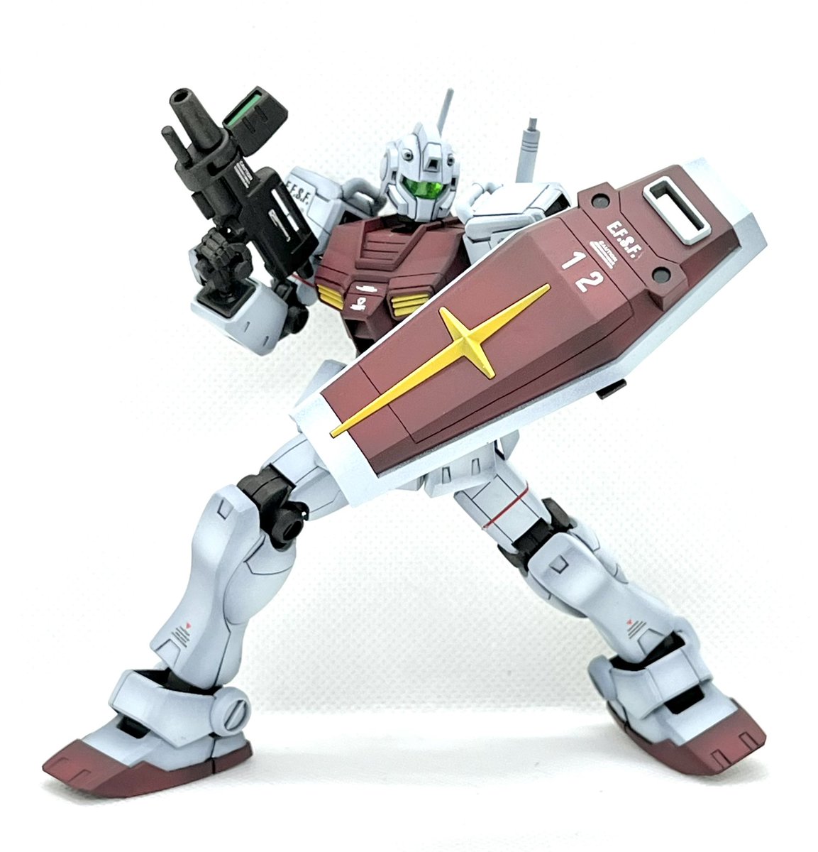 #ガンプラ 完成! HGUCジムC型をベースにIGLOO黙示録版のジム後期生産型を作りました EGガンダムから十時シールドを移植して、IGLOO版ビームスプレーガンをそれっぽく自作しました あとS字立ちできるよう強めに体型変更、モールド追加、合わせ目消し等を行いました