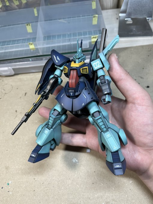 54 393 #ガンプラ 完成! HGザウォート・ヘヴィを作りました! 頭部と肩の位置をかなり上上げれるようにしたり等の体型変更、モールド追加、可動範囲拡張、ガイドテープー使ってのディテールアップ等を行いました 23/04/19 15:12