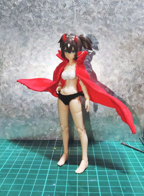 1 3 #メガミデバイス #素材ちゃん 現在型紙・縫製調整中の1/12サイズ ・ショーツ黒 ・ヒロイックマント赤 遅くとも8月にはboothで出品する予定です。 よろしくお願いいたします! 21/07/28 00:18