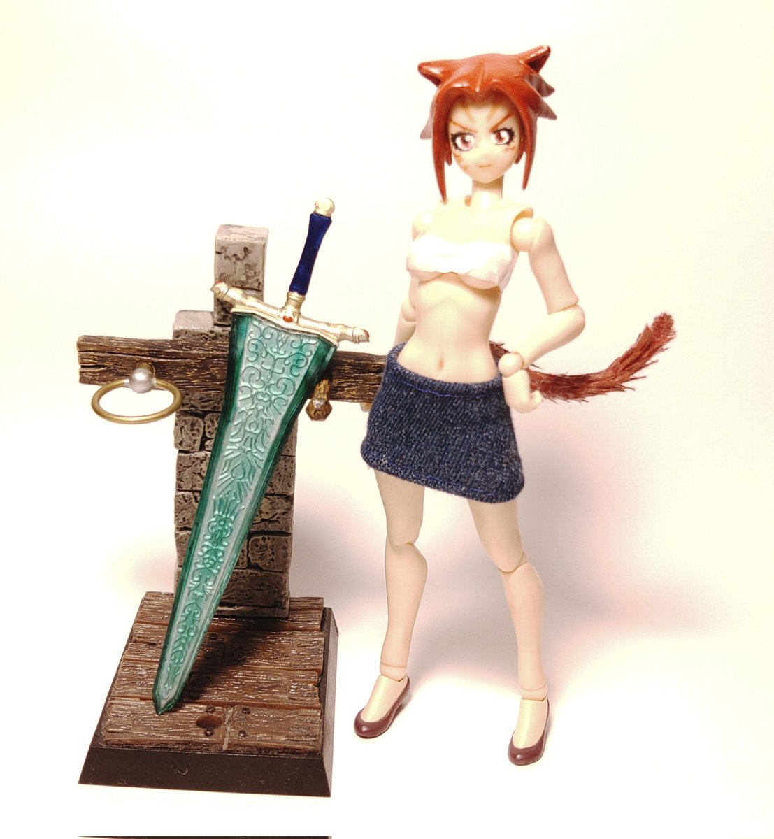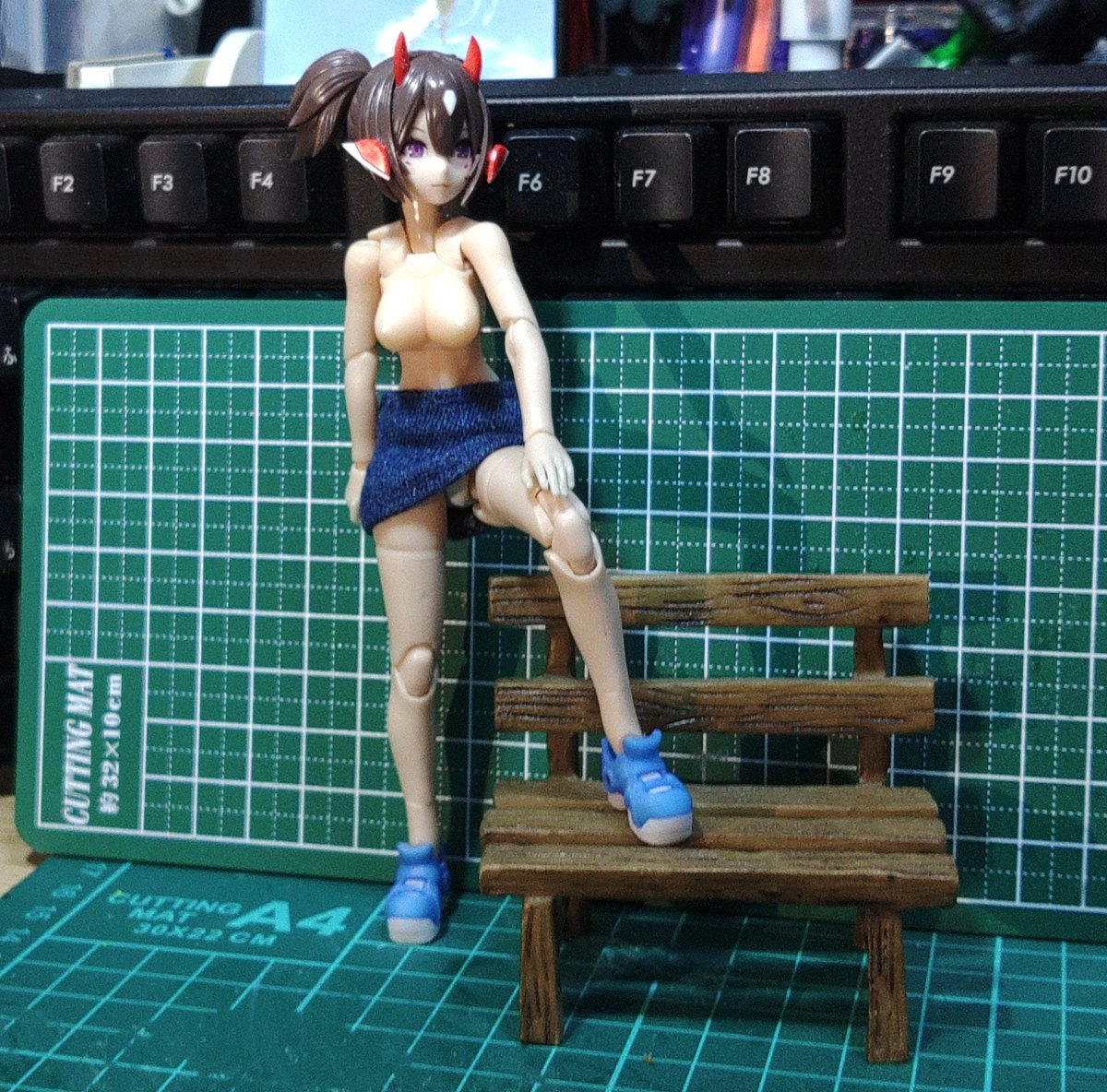 ちょっと画像暗くて申し訳ないんですが、こういうデニムのタイトスカート、需要ありそうならboothで出そうと思います。どうでしょうか? #メガミデバイス