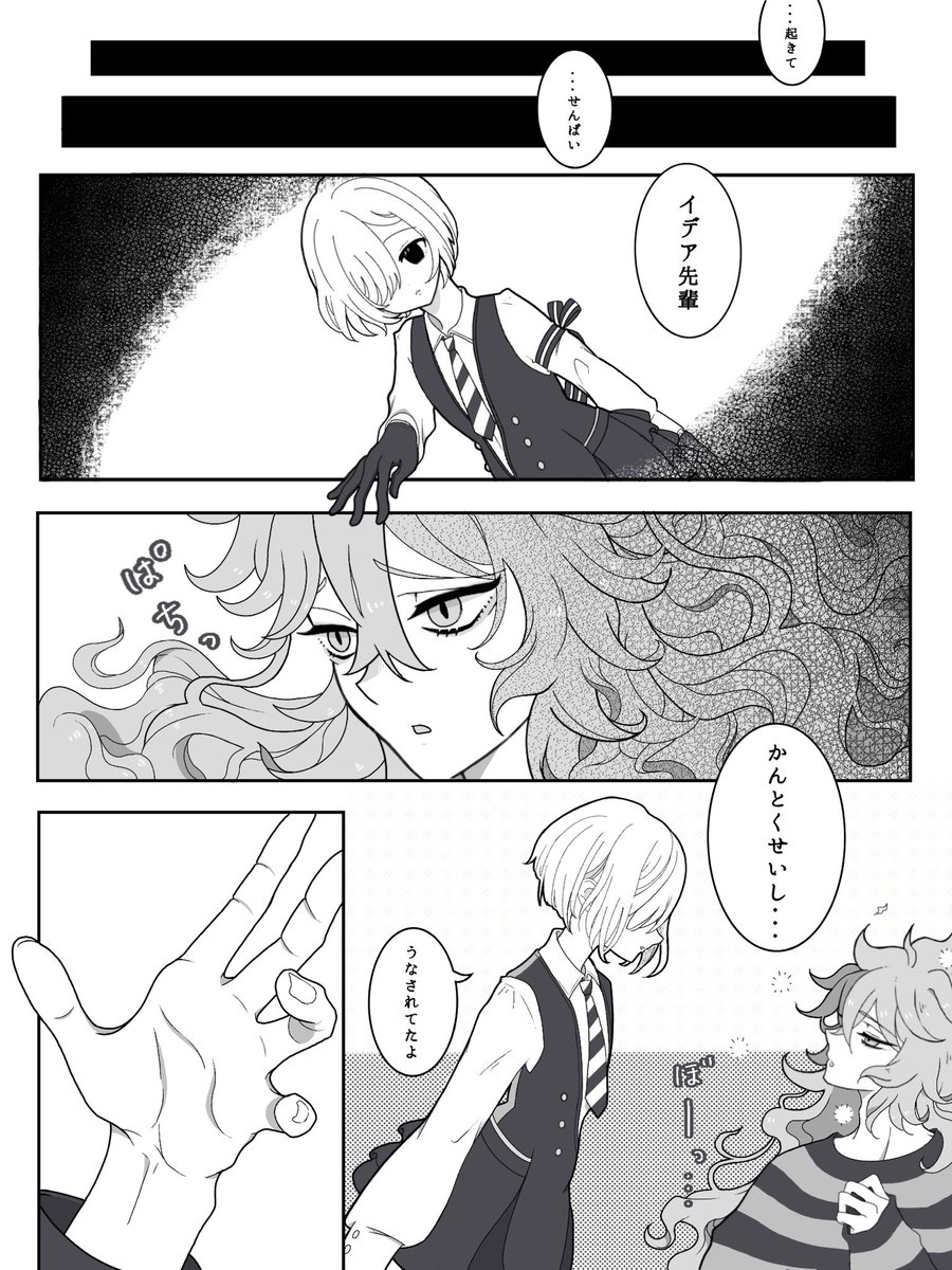 クロスオーバー&一部トレス☺︎ コジコジ氏が監督生だったら7章もきっと辛くない 一緒に頑張ろうね、イデアくん… (⚠︎2人ともひどいからツノ太郎モンペは見ないでね) #ツイステファンアート #twstファンアート