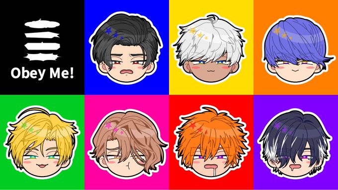 ニコニコ笑顔😁 なんかプリクラみたいだなと思って、SNOWとPolishをつかってそれっぽくしてみた(2枚目のやつ) 時間に余裕ができたら他のメンバーも描こうかな🎶 #obeymefanart #obeymebeelzebub #obeymeluke #obeymediavolo