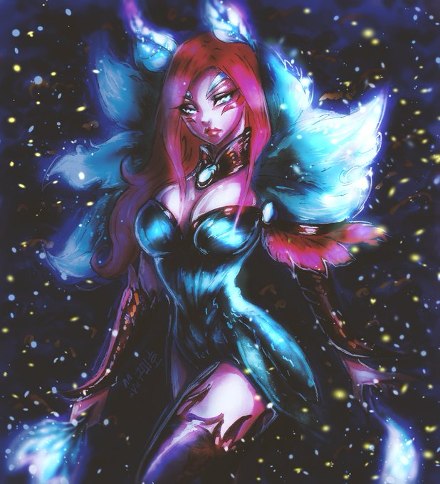 Stunning commission with lovely Ahri design for sweetie @TheRealMatterom NOT FOR USING💜 #ahri #LeagueOfLegends #fanart #Commission #digitalart
