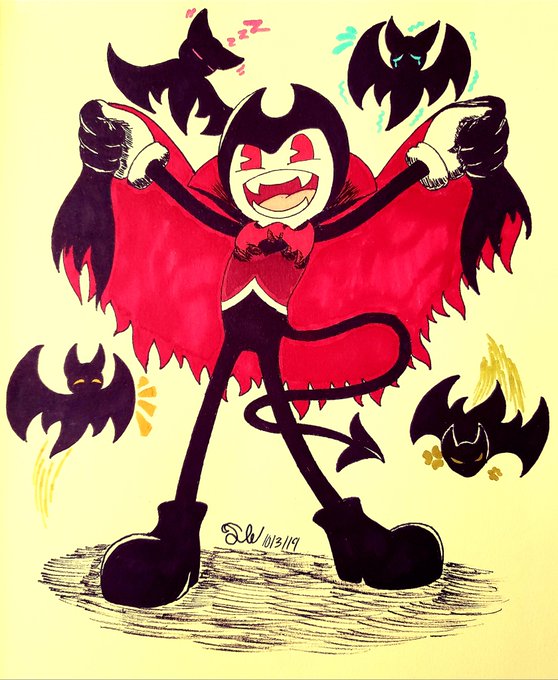 #Inktober2019 ~☆Day 3: Vampire☆~ (ft. Bendy the Dancing Demon from #Bendy_and_the_ink_machine) "Don't let this demonic 𝙫𝙖𝙢𝙥𝙞𝙧𝙚 and his fellow companions' cute looks fool you... They're trying to trick you... Their bites are no joke..."