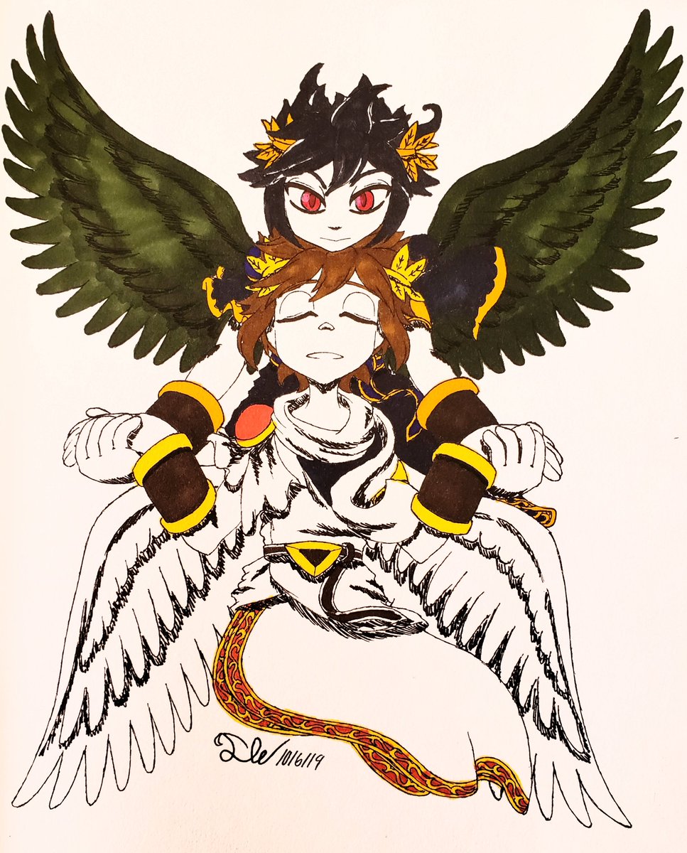 #inktoberday6 #INKTOBER2019 #inktober2019 ~☆Day 6: Angel☆~ (ft. Pit & Pittoo from #KidIcarus) "An 𝙖𝙣𝙜𝙚𝙡 who gives too much of itself out of kindness... Another who's wary and takes what's deserving to them... Both acts of selfishness... Two sides of the same coin..."