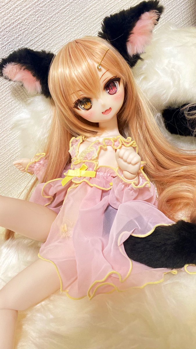 【赤紫×aile d'oreコラボMDD用ぴーちぱいS胸セット】が到着したので 「五十鈴(いすず)」に着てもらいました ピンクのスケスケベビードールが ちょっとえっちでスゴくカワイイです ...そして小さくてもしっかりプニプニDA! #ラジカルMDD部 #エルドール下着 #mddはいいぞ