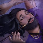 OFMD Inktober Day 10- Fancy 💜💙 Someone had to help him get ready. #ofminktober #ofmd #OurFlagMeansDeath #ourflagmeansdeathfanart #OFMDfanart #EdwardTeach #blackbeard #taikawaititi #gentlebeard #blackbonnet #inktober #digitalart #art #comms #commissionsopen