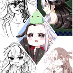 2 11 #今月描いた絵を晒そう 創作混じってる上4枚目線画ですみません(?) なんやかんや結構筆は持ってたな…… 23/04/30 18:26