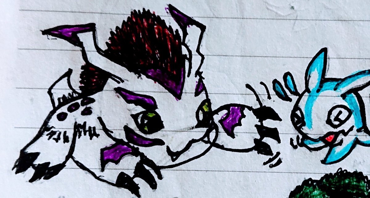 目のとこインク擦れたのとか毛とか 色々失敗したの悔しい #デジモン #イラスト