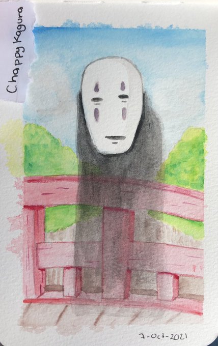 0 2 Day 6 - Spirit. I wasn’t able to do yesterday’s prompt, so I ended up doing it today. Hopefully I can catch up again and later on today upload today’s prompt #inktober2021 #inktober2021day6 #spiritedaway #noface #watercolor 21/10/08 06:59
