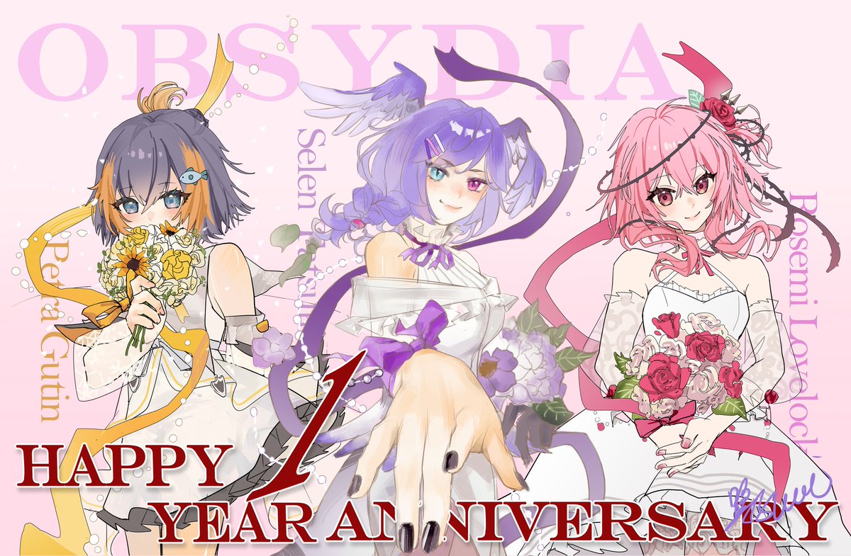happy 1 yeah anniversary!!! new clothes look like bride and love u amazing beautiful💕💕 一周年新衣服真的美到让人大喊:can u be my wife 的程度!! 三天的画看起来有点差异,排版也很一般,但是很开心! 祝OBYSDIA的女孩子们越来越好!!! #OBSYD1YEAH #GalleryOfRoses #PetraArt #Artsuki