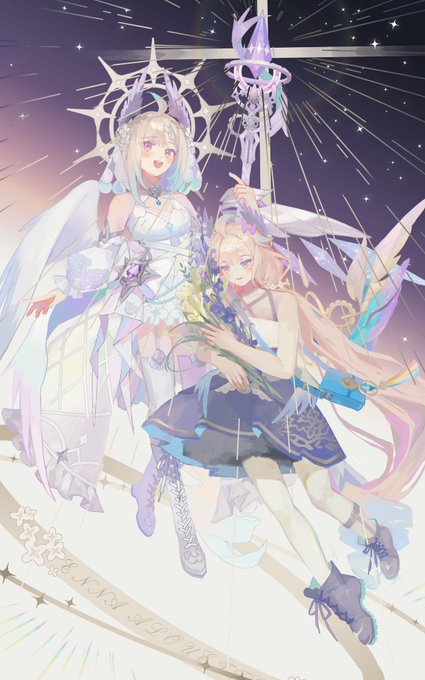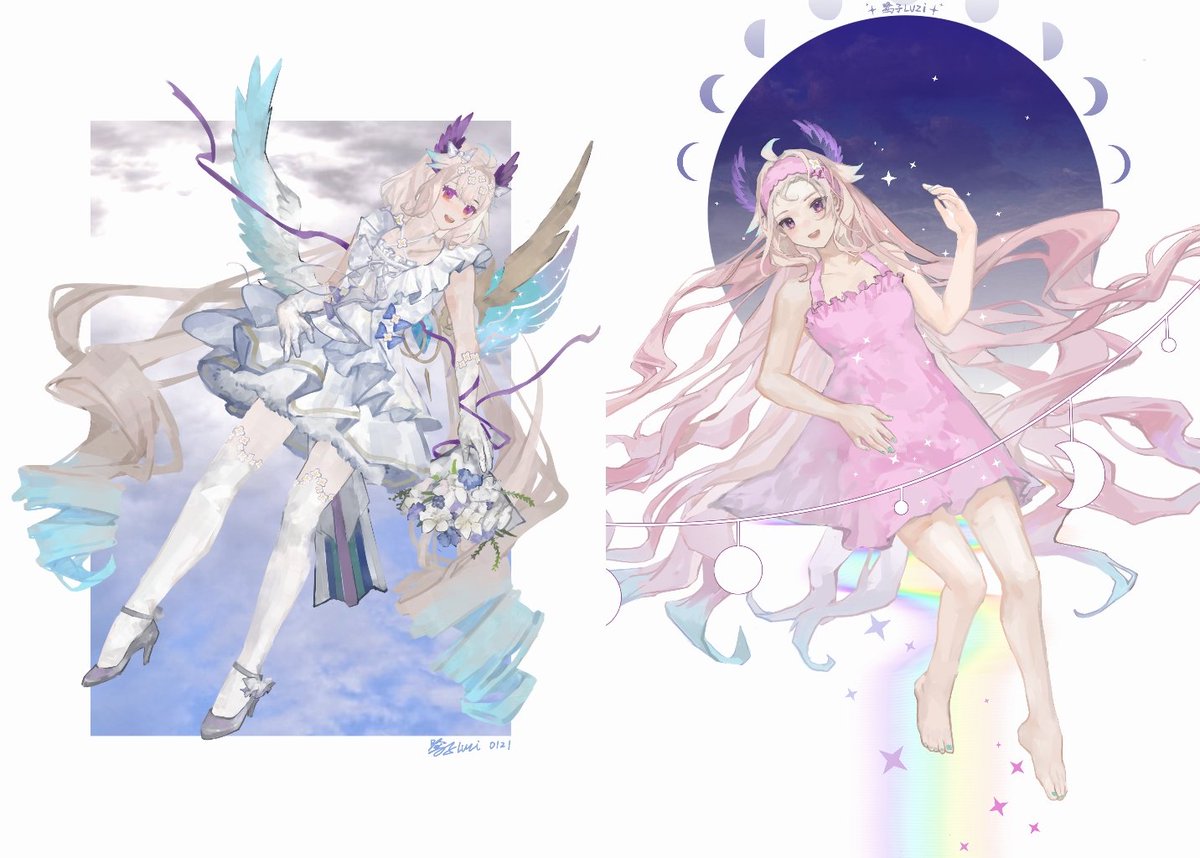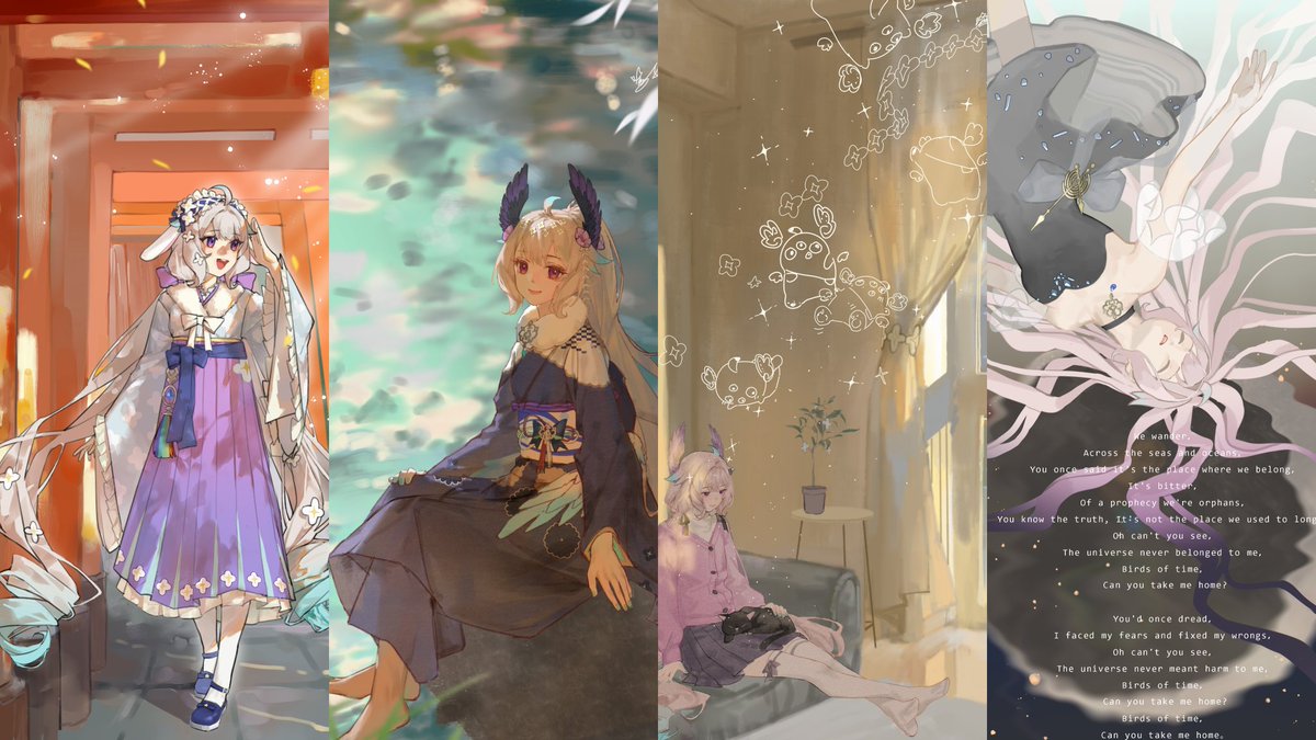 #Palouette #EnnDay2023 终于完成了预想的第一部分!算是一边自己在摸索一边画,画面改变比较多,后来赶进度画的比较草率了 画了所有goods和歌的衣装,因为知道可能会来不及所以没等enna发tag就已经在画了,推里只能发拼图了,其实算上过年贺图有14张刚好凑够9张图,希望你能够喜欢!