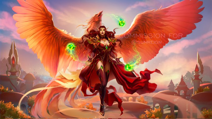“Rise of the Phoenix” for @Sunreign 🧡 #Wow #worldofwarcraft #OC #shadowlands #bloodelf #ArtistOnTwitter