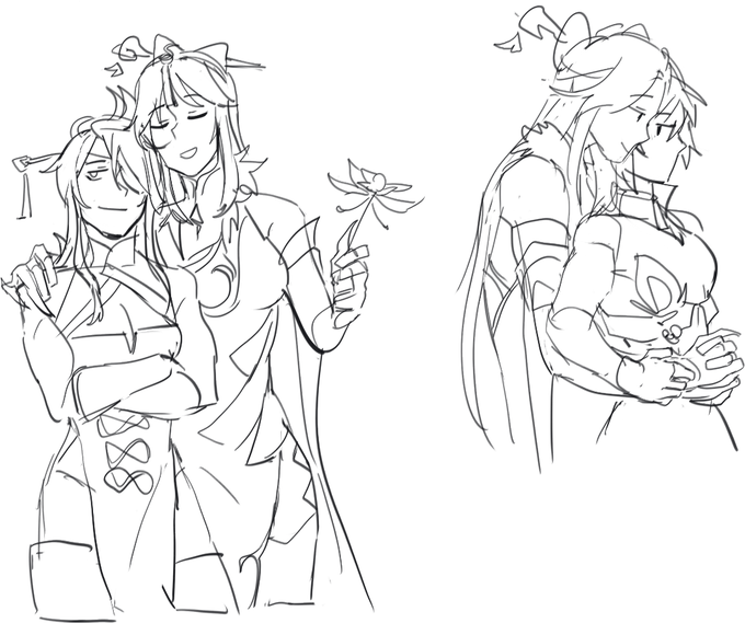 im probably the only #qingbei shipper in the world, but they are my little rarepair and i love them, keqing as the little hot blooded noble and beidou as the playful outlaw she gets entangled with #genshinimpactfanart