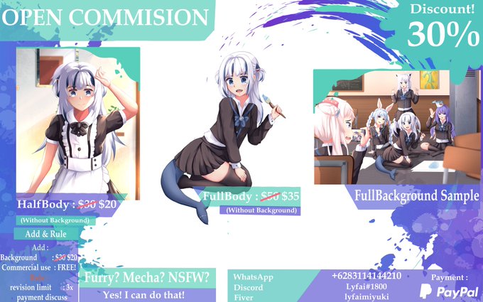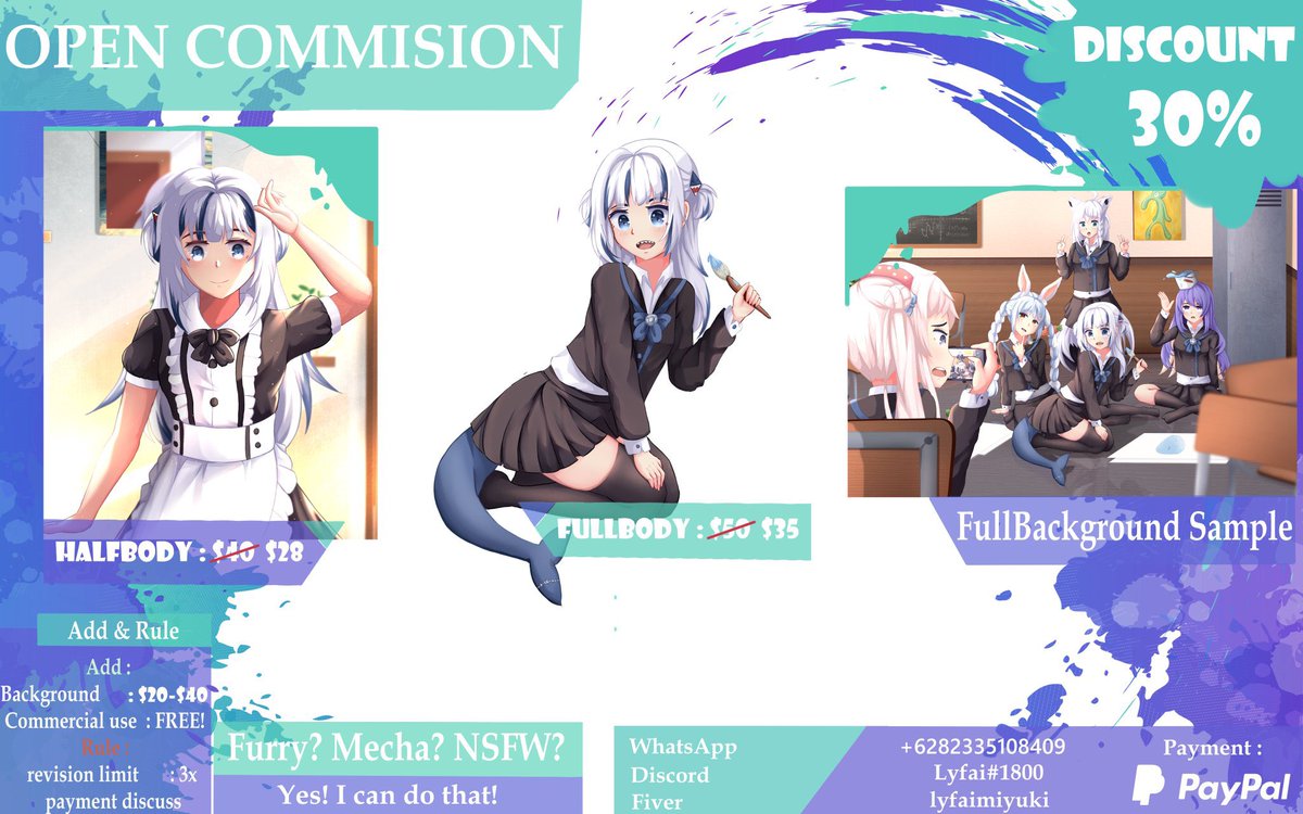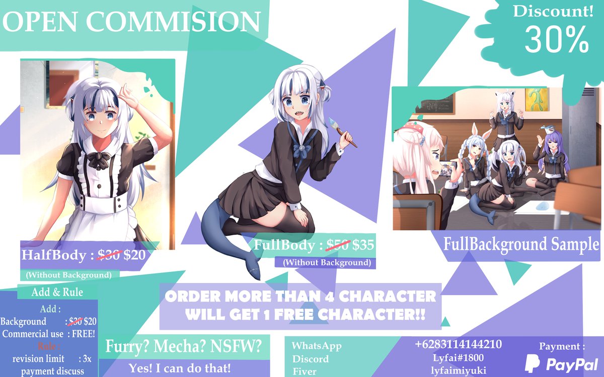 OPEN COMMISSION!!! (no click bait price) - I OPEN AGAIN DISCOUNT THIS WEEK!!! order now before the discount runs out!!! for tomorrow week has changed to normal price! #Commission #commissionopen #commissions #CommissionSheet #hololive #discount #artwork #AnimeArt #gawrt #NSFWRP