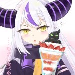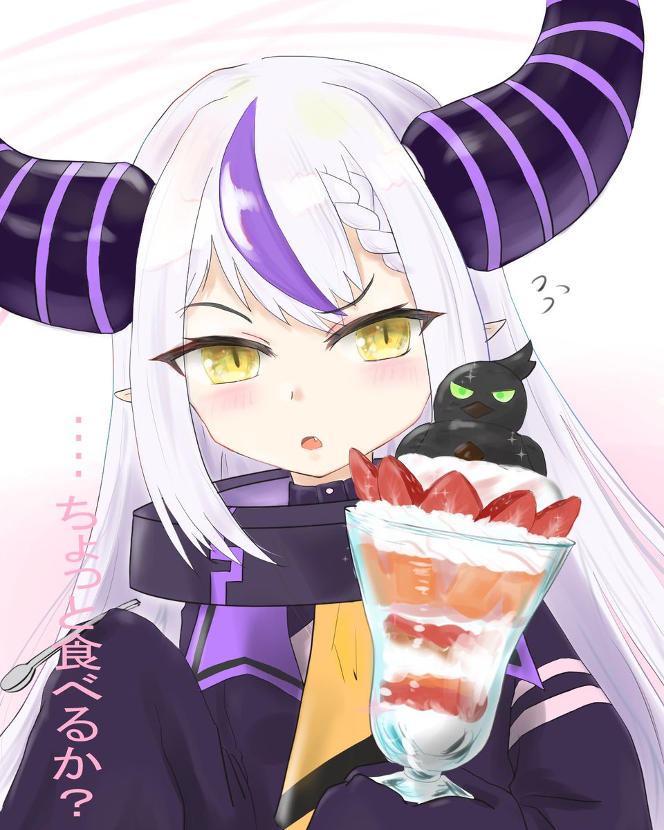 「イチゴパフェをちょっと分けてくれるラプ様」 配信でイチゴパフェ好きっていってたから、想像で描きました。 ラプ様かわええw #ホロライブ #holoX #laplus_great #Laplus_Artdesu #ラプラス・ダークネス #イラスト #イラスト練習 #イラスト好きな人と繋がりたい #絵描きさんと繋がりたい