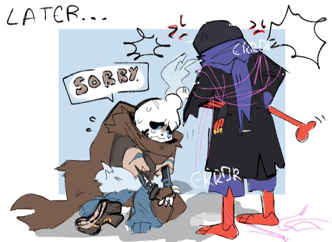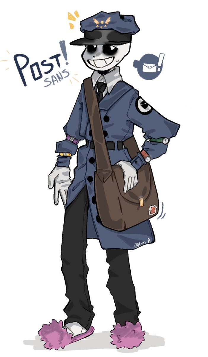 @Angelic82329812 HAKDHSJDB ntp, es un oc que tengo llamado "Post! Sans" en resumen es un cartero que viaja por el multiverso entregando correspondencia de sansessss