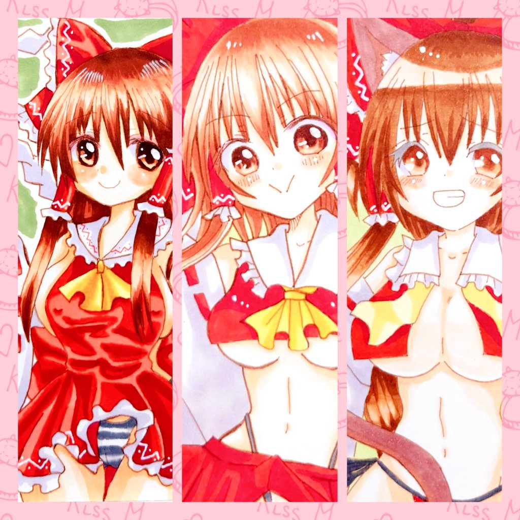 数年〜前から描いてきた画像残ってる博麗霊夢様纏めてみましたっ(左向!)凄い絵柄変わってて自分で面白い…最新は4枚目です。微エチ有ります⚠ #アナログ絵 #絵師さんフォロバ100 #絵描きフォロバ100 #過去絵と現在絵を比較してみようキャンペーン