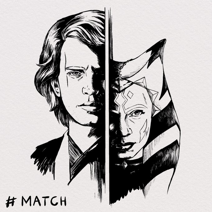 Okay. Here we go. #inktober2022 day 8: #match I‘m a little proud of this pic 🥰 Ahsoka and Anakin - two of my all time favourite Charakters from #StarWars And I think the topic matches perfectly. 🤭 #inktober2022match #digitalart #fanart #procreate #ahsokatano #anakinskywalker