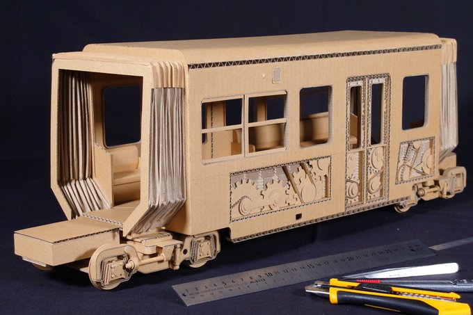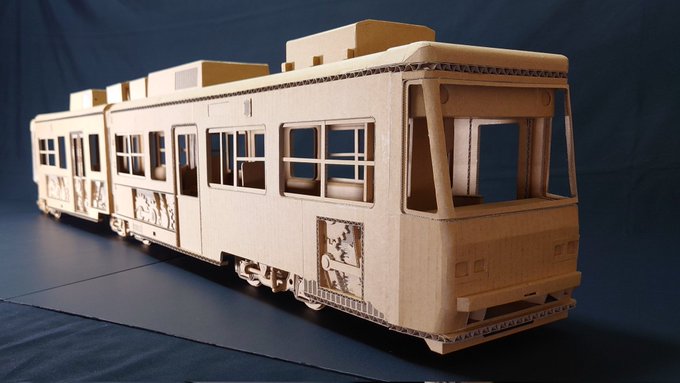 ダンボール広島電鉄 3900形 作品が大きいので組立式にしました。 作製途中ですが清水ホビーショーに展示させていただきます。 モデルとなっている広島電鉄ダンボールラッピング電車の画像も置きますのでご参照下さい。(撮影者「やおよろずの趣味」様(@VK45_01P)より使用許可を戴きました。) twitter.com/i/web/status/1…